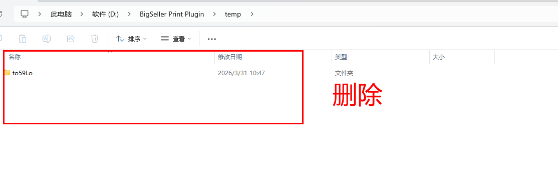 打开插件安装目录,找到temp目录如D:\BigSeller Print Plugin\temp,将temp下目录的文件全部删除(根据实际情况确认是否需要全部删除)