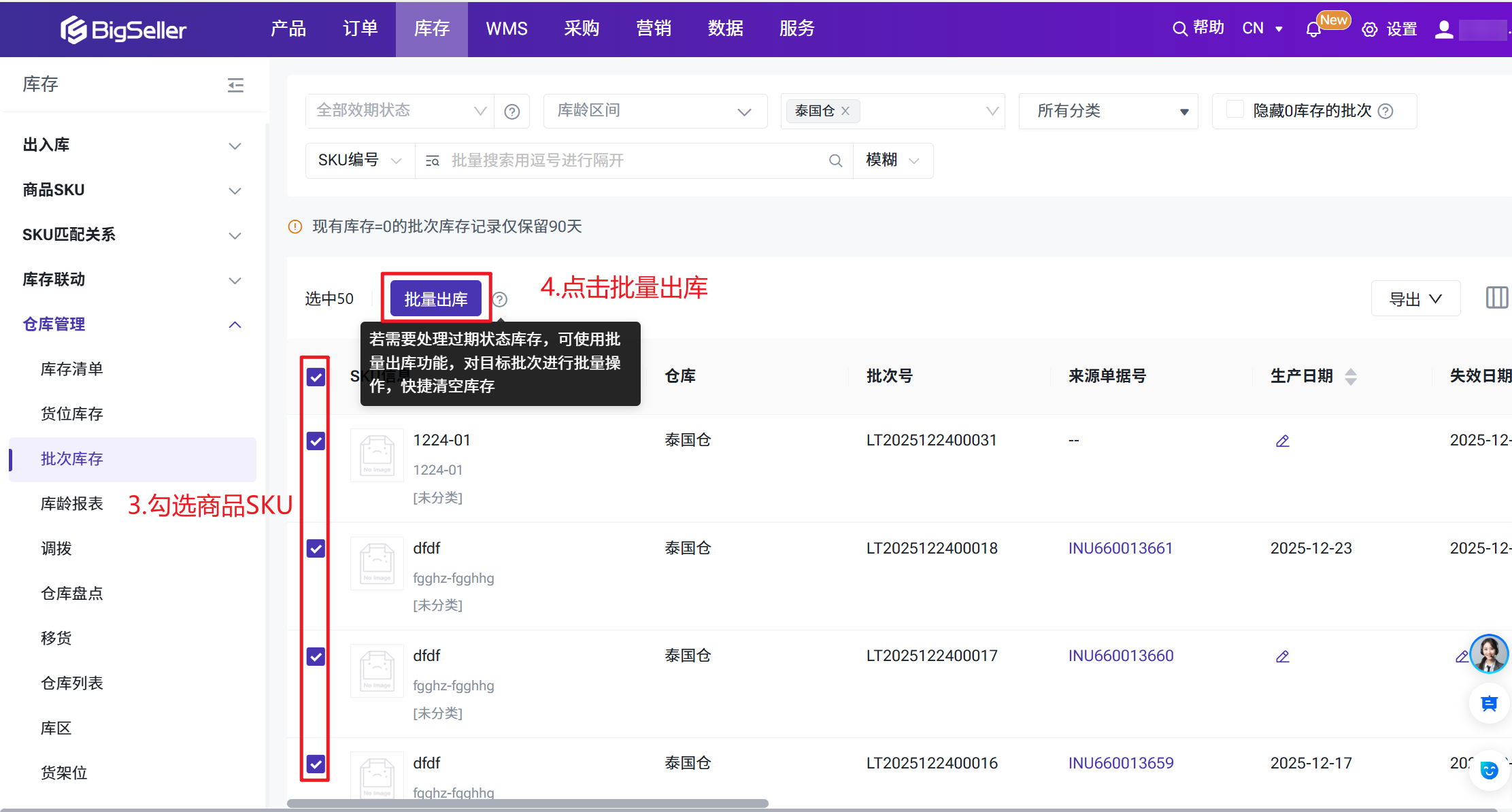 1、批量出库批次现有库存