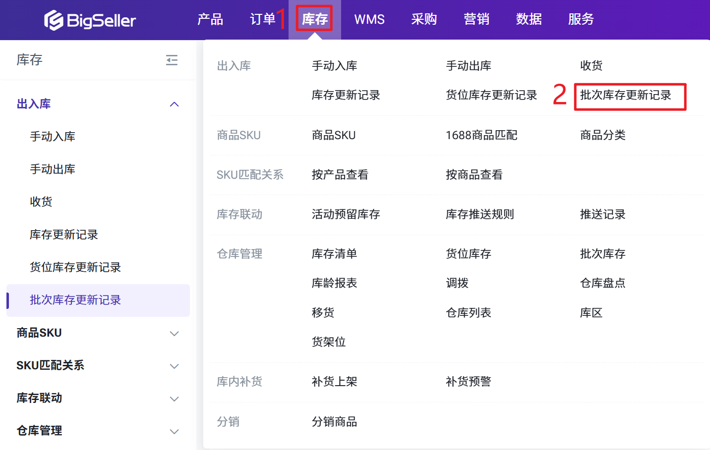 注意:此页面按批次显示数据,而非按 SKU 显示库存更新记录。如果单个 SKU 关联多个批次变更,页面将显示每个批次的单独记录。