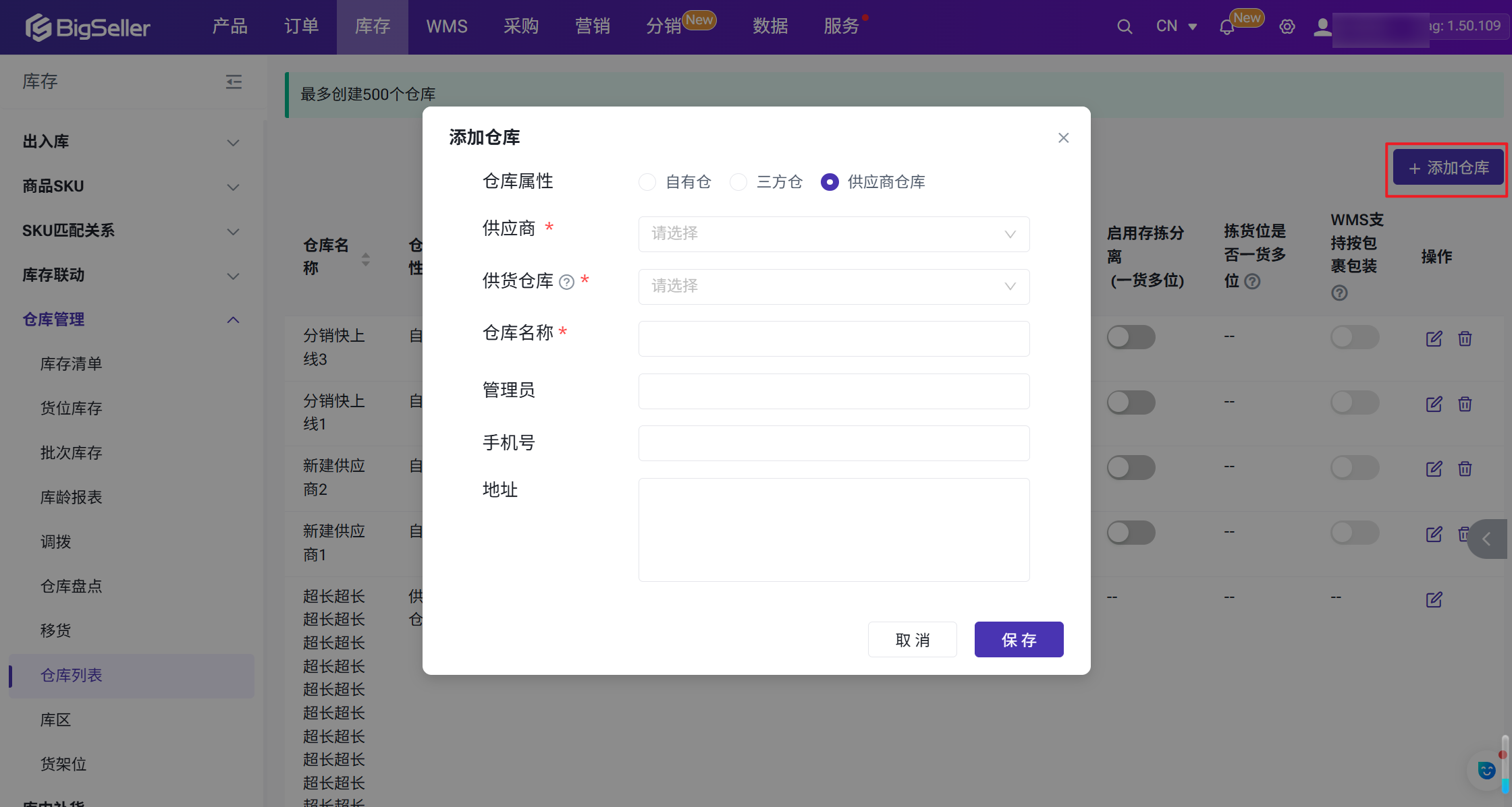 ⚠供应商修改/增加供货仓库后,分销商端不会自动创建供应商仓库,需要手动添加未匹配的供应商仓库,创建成功后建立供货仓、分销商仓库的映射关系,并去平台店铺修改或者创建对应的仓库,将店铺和BigSeller仓库的取件地址更新为一致的!